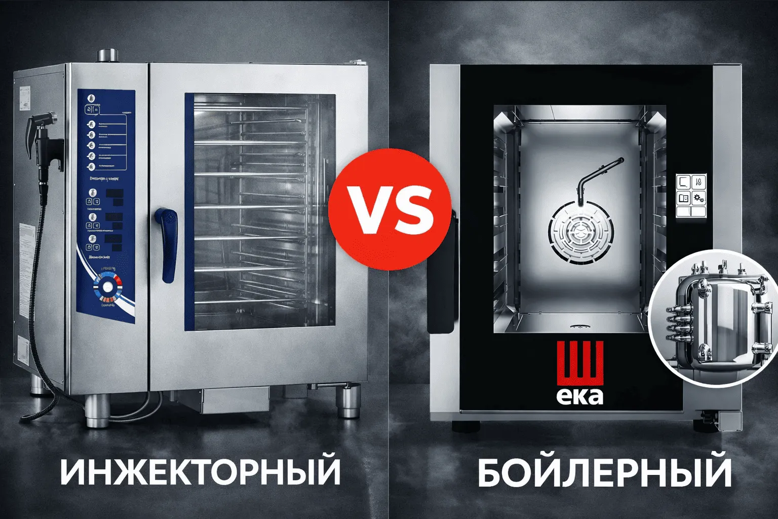 Выбор между инжекторным и бойлерным пароконвектоматом — один из самых частых вопросов при оснащении профессиональной кухни. Оба типа выполняют одни и те же задачи: запекают, тушат, готовят на пару, выпекают и регенерируют блюда. Однако принцип парообразования у них принципиально разный, и это влияет на стоимость, обслуживание и результат для конкретных блюд. В этой статье разбираем все отличия без маркетинговых мифов — только практика и факты.