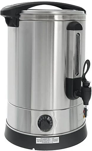 Объем 15,3 л; температурный режим от 0 до 100 °C; индикатор уровня воды; термоконтроллер; защита от сухого пуска; смотровое окно; водозащищенная кнопка включения; терморучки; индикатор нагрева.