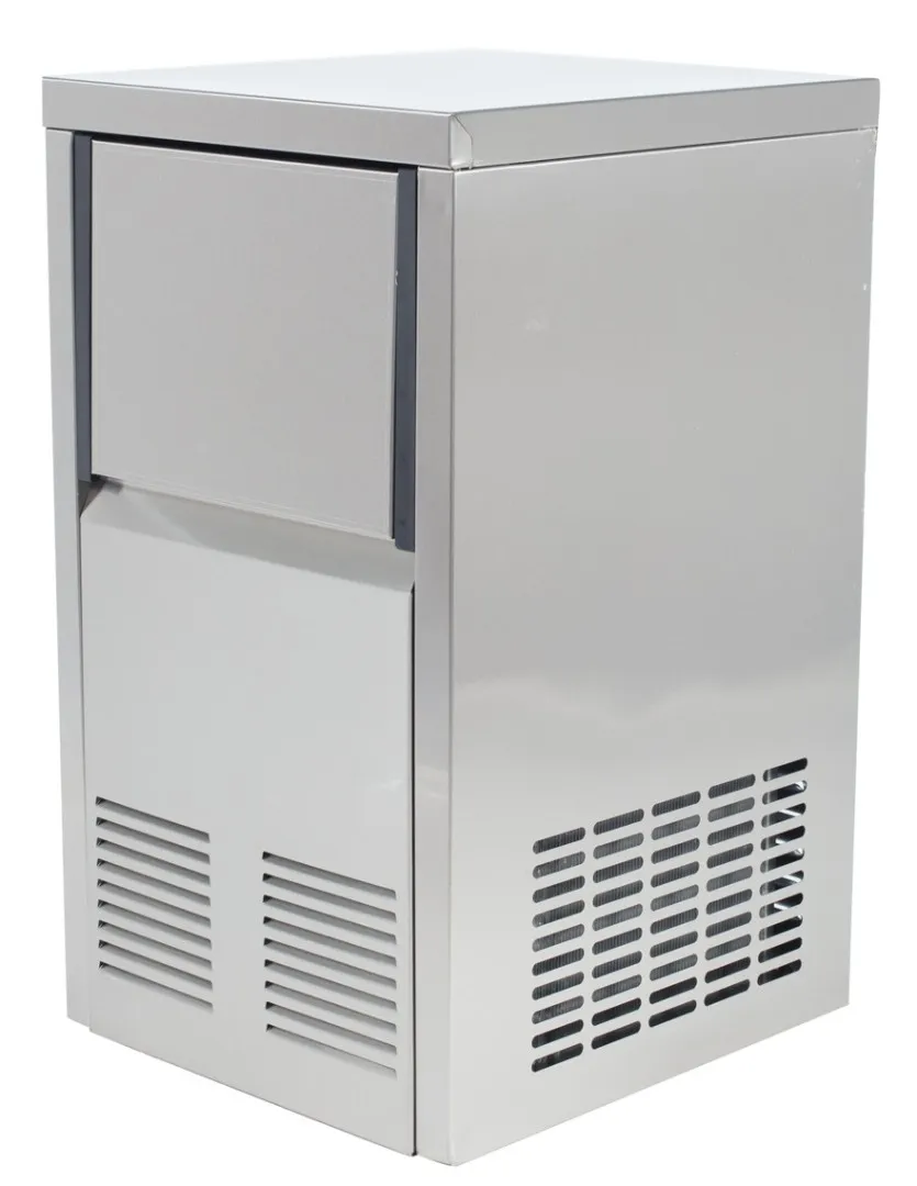 Производительность: 25 кг/сутки. Форма льда: Кубиковый. Встроенный бункер: Да. Вместимость бункера: 10 кг. Охлаждение компрессора: Воздушное. Подключение к водопроводу: Да. Материал корпуса: Нержавеющая сталь.