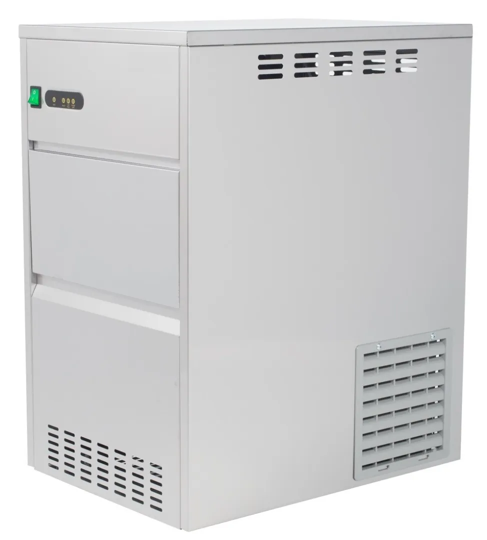 Производительность: 50 кг/сутки, Форма льда: Гранулированный, Охлаждение компрессора: Воздушное, Встроенный бункер для льда: Да, Вместимость бункера: 15 кг, Подключение к водопроводу: Да, Материал корпуса: Нержавеющая сталь, Страна: Китай.