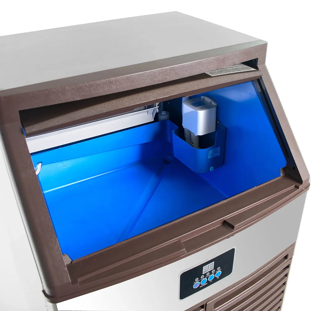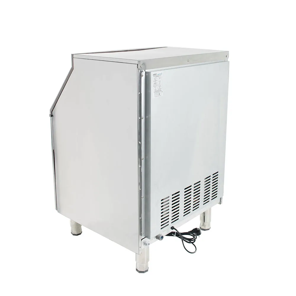 Производительность: 90 кг/сутки. Форма льда: Кубиковый. Охлаждение компрессора: Воздушное. Встроенный бункер для льда: Да. Вместимость бункера: 15 кг. Подключение к водопроводу: Да. Материал корпуса: Нержавеющая сталь.