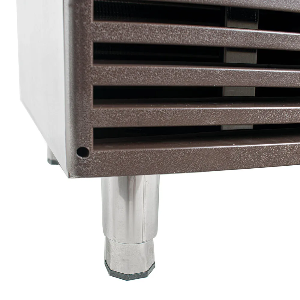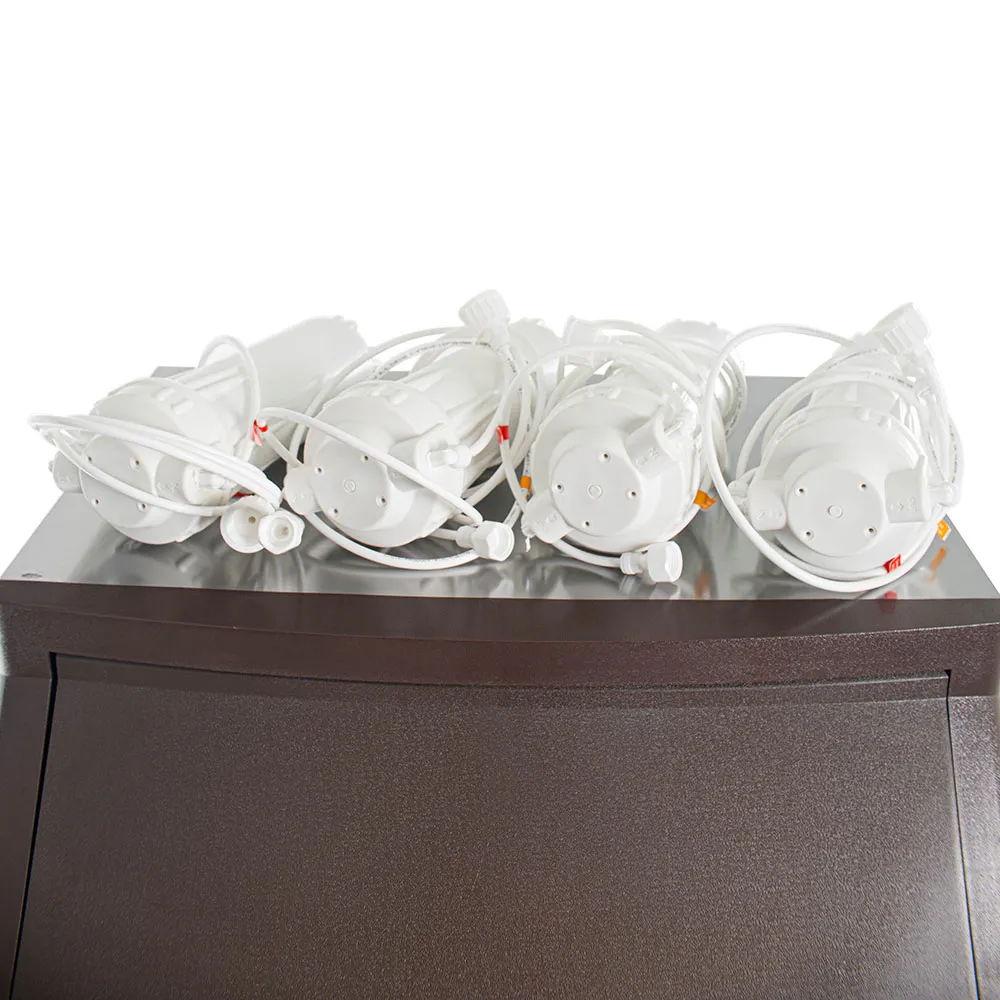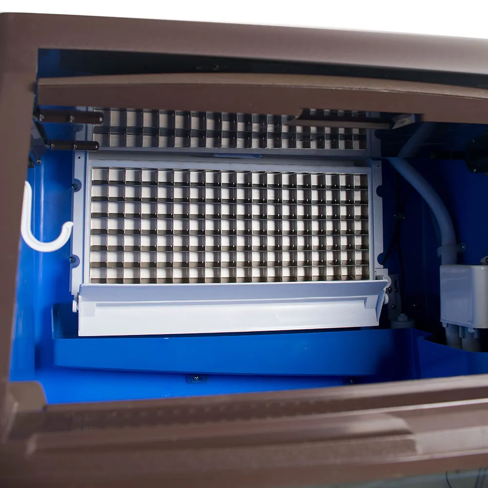 Корпус льдогенератора выполнен из нержавеющей стали, что обеспечивает долговечность и устойчивость к коррозии. Встроенный бункер для льда вместимостью 15 кг позволяет хранить готовый лед, обеспечивая его доступность в любое время. Аппарат оснащен системой воздушного охлаждения компрессора, что способствует эффективной работе и снижению энергопотребления.