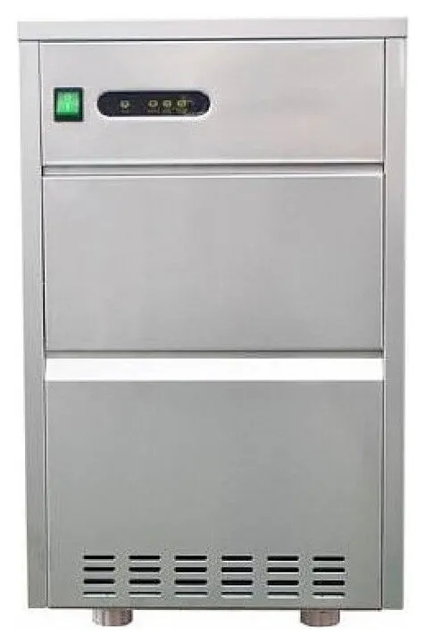 Производительность: 30 кг/сутки. Тип льда: пальчиковый. Размер льда: 28×40 мм. Охлаждение компрессора: воздушное. Встроенный бункер для льда: Да. Вместимость бункера: 7 кг. Подключение к водопроводу: Да. Материал корпуса: нержавеющая сталь.