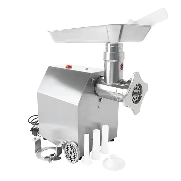 Прибор оснащен мощным двигателем, способным выдержать ежедневные нагрузки на предприятиях общественного питания с большой проходимостью. При сравнительно небольших габаритах: 385x240x415 (Д х Ш х В, мм), мясорубка может обработать до 150 кг продукта в час.