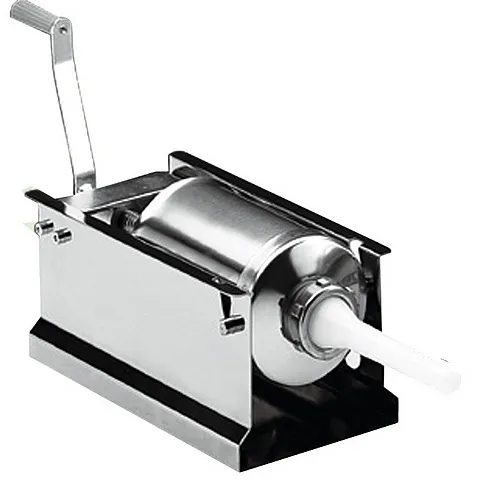 Шприц имеет горизонтальную конструкцию, что обеспечивает удобство в эксплуатации и возможность контроля над процессом наполнения. Благодаря этому оператор может легко регулировать подачу начинки, добиваясь желаемого результата.