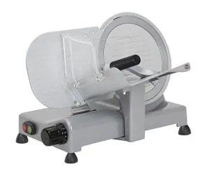 - Корпус слайсера изготовлен из прочного окрашенного алюминиевого сплава, что обеспечивает высокую устойчивость к коррозии и механическим повреждениям. Этот материал идеально подходит для использования в условиях интенсивной эксплуатации, характерных для профессиональных кухонь и торговых точек.