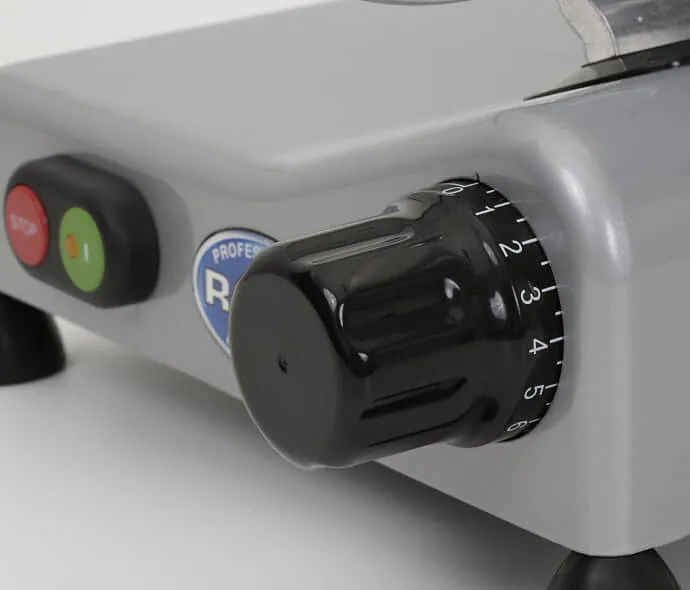 Слайсер RGV Luxury 20 GS-R PROF предлагает возможность нарезки продуктов размером до 180 x 130 мм, что подходит для большинства стандартных продуктов. Пользователь может легко регулировать толщину нарезки с помощью вращающейся градуированной рукоятки, обеспечивая точность и индивидуальный подход к каждому виду продуктов. Толщина нарезки может варьироваться, что позволяет использовать слайсер для создания как тонких ломтиков для закусок, так и более толстых — для бутербродов или горячих блюд. -