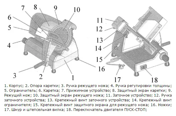 Безопасность и удобство в эксплуатации: Слайсер оснащен прижимным устройством и защитным кожухом, что гарантирует безопасность во время работы. Водостойкий выключатель и эргономичный дизайн управления делают использование устройства простым и удобным.