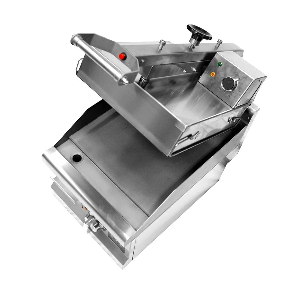 Контактный электрический гриль предназначен для профессиональной термической обработки мясных, рыбных и овощных продуктов, а также для приготовления сэндвичей, панини и блюд быстрого питания. Конструкция обеспечивает одновременный нагрев продуктов с обеих сторон, что сокращает время готовки и способствует равномерному прожариванию без потери сочности. Корпус выполнен из нержавеющей стали, что гарантирует устойчивость к интенсивной эксплуатации и лёгкость санитарной обработки. Жарочные поверхности оснащены сменным покрытием из тефлоновой стеклоткани, благодаря чему продукты не прилипают, а уход за оборудованием становится максимально простым. Совмещение высокой мощности, удобного цифрового управления и регулируемых параметров делает этот гриль эффективным инструментом для заведений общественного питания с высокой проходимостью.