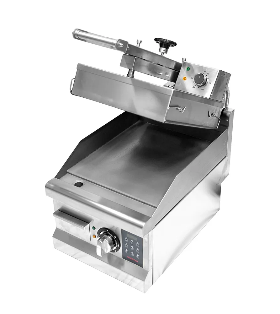 Двусторонний нагрев существенно сокращает цикл готовки, что особенно важно для заведений с высоким потоком заказов. Точная регулировка температуры и давления между пластинами обеспечивает аккуратную прожарку и сохранение структуры продукта, исключая риск его пересушивания. Возможность сохранения программ упрощает работу персонала, минимизируя ошибки при приготовлении и поддерживая стабильное качество готовой продукции.