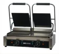 - Комбинированная рабочая поверхность: верхняя и нижняя плиты рифлёные и гладкие, что позволяет готовить различные блюда с оптимальной текстурой.