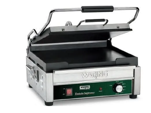 Гриль прижимной Waring WFG250 — это высококачественное профессиональное оборудование, предназначенное для быстрого и эффективного приготовления сэндвичей, панини, стейков, рыбы, овощей и других продуктов в условиях интенсивного использования. Оснащённый двумя гладкими жарочными плитами из чугуна, он обеспечивает равномерное прогревание продуктов и лёгкость в обслуживании. Мощный электрический нагреватель и прочный корпус из нержавеющей стали делают этот гриль надёжным инструментом для приготовления различных блюд в кафе, ресторанах, столовых, фуд-кортах и других заведениях общественного питания.