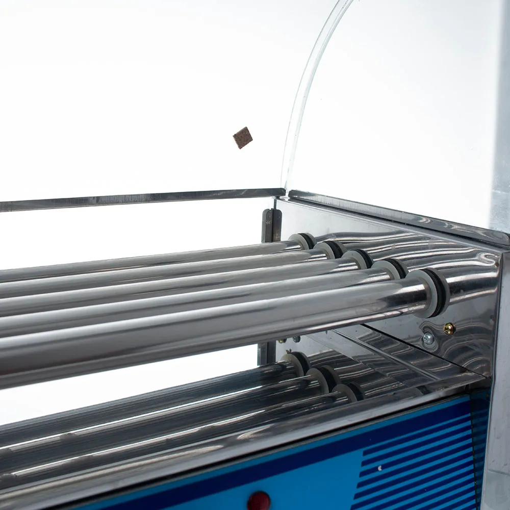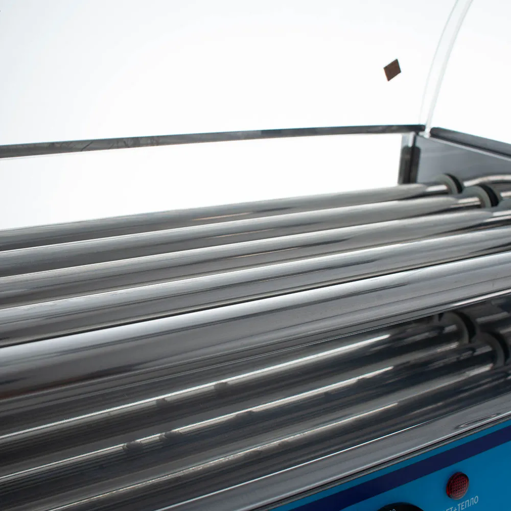 Роликовый гриль Foodatlas CY-5 предназначен для эффективного и равномерного обжаривания сосисок, сарделек и колбасок на предприятиях общественного питания и торговли. Оснащён пятью роликами, каждый из которых имеет ширину 470 мм и диаметр 25 мм, что обеспечивает оптимальное распределение тепла и равномерное приготовление продуктов. Расстояние между роликами составляет 10 мм, что позволяет размещать изделия стандартного размера без риска их застревания или неравномерного обжаривания.