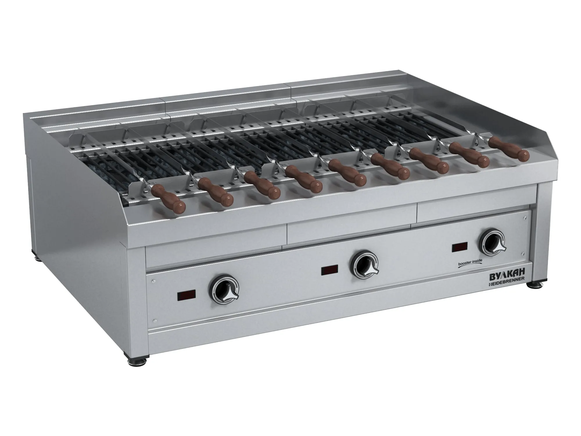 Электрическая шашлычница Вулкан ETK-BST3 «Сламет» — профессиональное настольное оборудование, предназначенное для жарки мяса, рыбы, птицы и овощей в ресторанах, кафе и других предприятиях общественного питания. Эта модель сочетает в себе высокую мощность, функциональность и надежность, что делает ее отличным выбором для заведений, где требуется быстрое и качественное приготовление блюд.