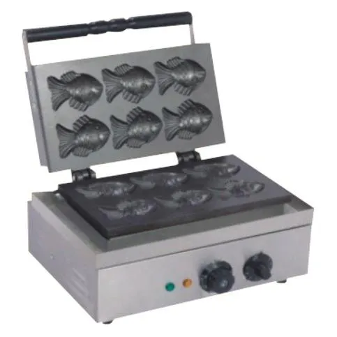 Вафельница Starfood предназначена для приготовления традиционных японских вафель тайяки в форме рыбок. Благодаря шести ячейкам, устройство позволяет одновременно выпекать шесть вафель, что повышает производительность и сокращает время приготовления. Пресс-формы изготовлены из чугуна, обеспечивающего равномерный нагрев и долговечность. Корпус выполнен из нержавеющей стали, что гарантирует устойчивость к коррозии и легкость в уходе. Электромеханическая панель управления оснащена регулятором температуры и таймером, позволяя точно контролировать процесс выпечки.
