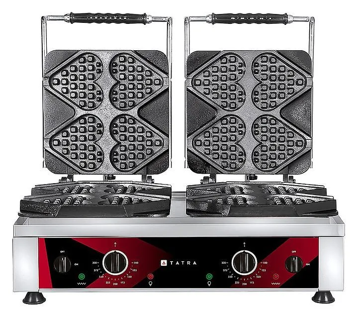 Tatra TWI 2 TIAMO идеально подходит для заведений, специализирующихся на приготовлении десертов и выпечки. Благодаря возможности выпекать вафли в форме сердца, она позволяет разнообразить меню и привлечь внимание клиентов оригинальной подачей блюд. Две независимые зоны выпечки делают эту модель особенно полезной в условиях высокой загруженности, обеспечивая быструю и эффективную работу.