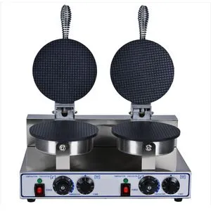 Тип вафель: классические; Количество вафель: 2; Количество рабочих поверхностей: 2; Диаметр рабочей поверхности: 210 мм; Материал нагреваемых поверхностей: алюминий с антипригарным покрытием; Оснащение: таймер, терморегулятор; Управление: независимое для каждой рабочей поверхности; Комплектация: 3 пластиковых стика для формирования рожков.