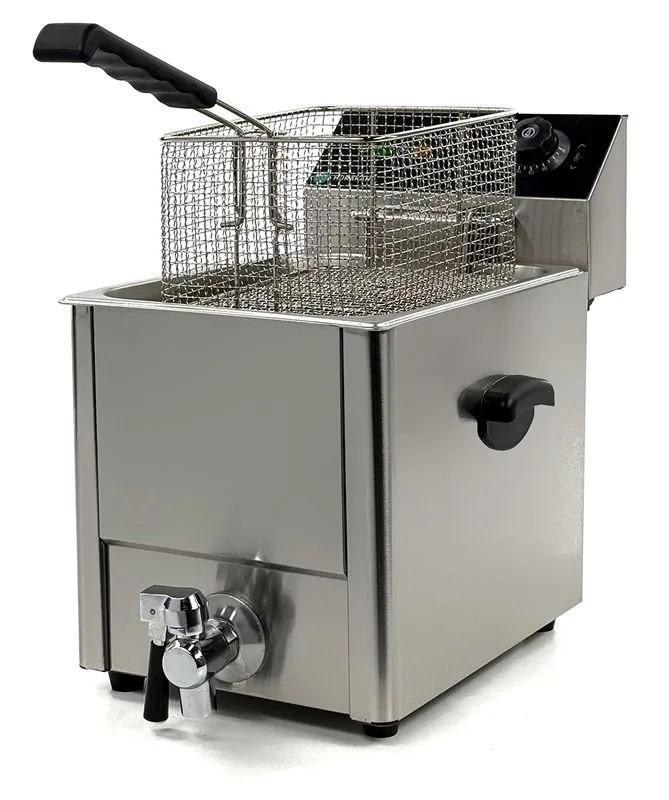Подходит для фудтраков, мини-кафе и буфетов, где пространство ограничено, а требования к гигиене строгие. Сливной кран упрощает уход, предотвращая накопление осадка и продлевая свежесть масла. Стабильный нагрев гарантирует repeatable результаты, что критично для поддержания репутации заведения.