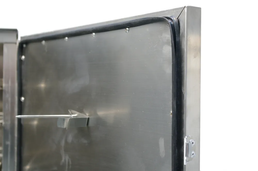 Коптильня Kocateq DSHS04 представляет собой надежное и функциональное оборудование для горячего копчения мясных и рыбных продуктов на предприятиях общественного питания и торговли. Корпус, дверь и защелки изготовлены из высококачественной нержавеющей стали AISI 304, обеспечивая долговечность и гигиеничность эксплуатации.