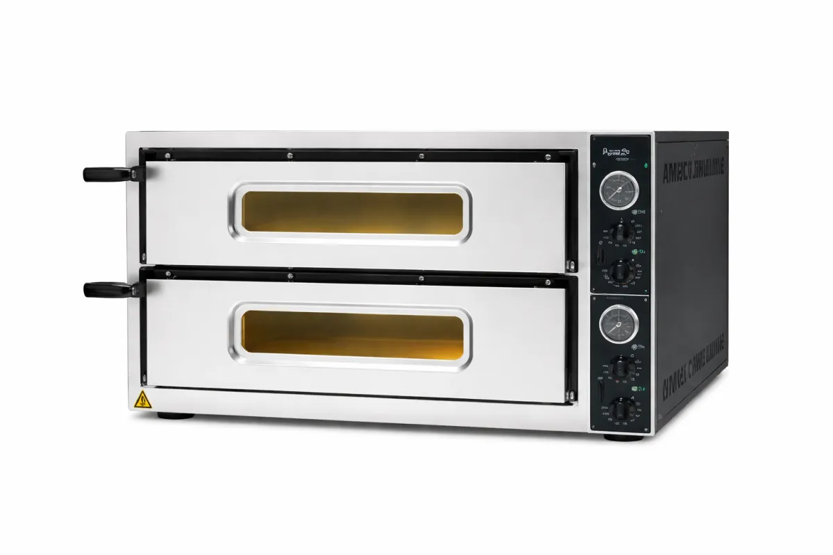 Профессиональная электрическая печь для пиццы предназначена для интенсивного использования на предприятиях общественного питания. Модель оснащена двумя независимыми камерами, что позволяет одновременно готовить различные блюда с разными температурными режимами. Каменные поды обеспечивают равномерное распределение тепла и качественную пропекание теста, а раздельная регулировка верхнего и нижнего нагрева дает полный контроль над процессом выпечки.