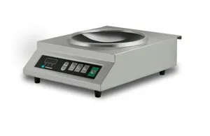 Рабочая зона выполнена в виде углублённой конфорки WOK, рассчитанной на посуду с изогнутым дном. Конструкция обеспечивает устойчивое положение ёмкости и равномерный прогрев по всей рабочей поверхности. Корпус изготовлен из нержавеющей стали и ориентирован на интенсивную эксплуатацию с регулярной санитарной обработкой в профессиональных условиях.