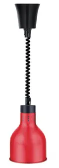 Инфракрасный источник излучения с цоколем E27 обеспечивает стабильный нагрев без значительных конвективных потерь, минимизируя испарение влаги из блюд. Алюминиевый рефлектор усиливает эффективность направления тепла, создавая оптимальное пятно покрытия для стандартных порций. Красное покрытие плафона сочетает функциональность с визуальной интеграцией в интерьер профессиональных кухонь.
