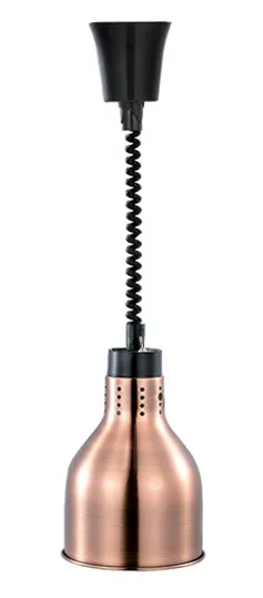 Подвесная инфракрасная лампа обеспечивает равномерное поддержание температуры готовых блюд на линиях раздачи профессиональных кухонь общественного питания. Нагревательный элемент генерирует направленное инфракрасное излучение, фокусирующееся в зоне плафона без прямого контакта с продуктами. Корпус из нержавеющей стали в медном исполнении характеризуется повышенной коррозионной стойкостью и устойчивостью к паровым и термическим нагрузкам.