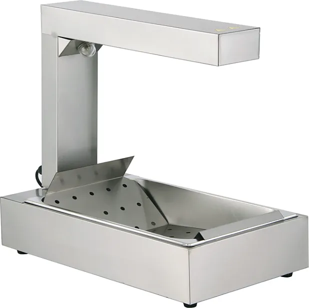 Настольный подогреватель предназначен для поддержания оптимальной температуры картофеля фри и аналогичных снеки в фастфуд-зонах профессиональных кухонь общественного питания. Инфракрасная лампа обеспечивает равномерное распределение тепла без прямого контакта с продуктом, сохраняя хрусткость и предотвращая размокание. Корпус из нержавеющей стали серебристого цвета характеризуется устойчивостью к жировым отложениям, паровым нагрузкам и агрессивным моющим средствам.