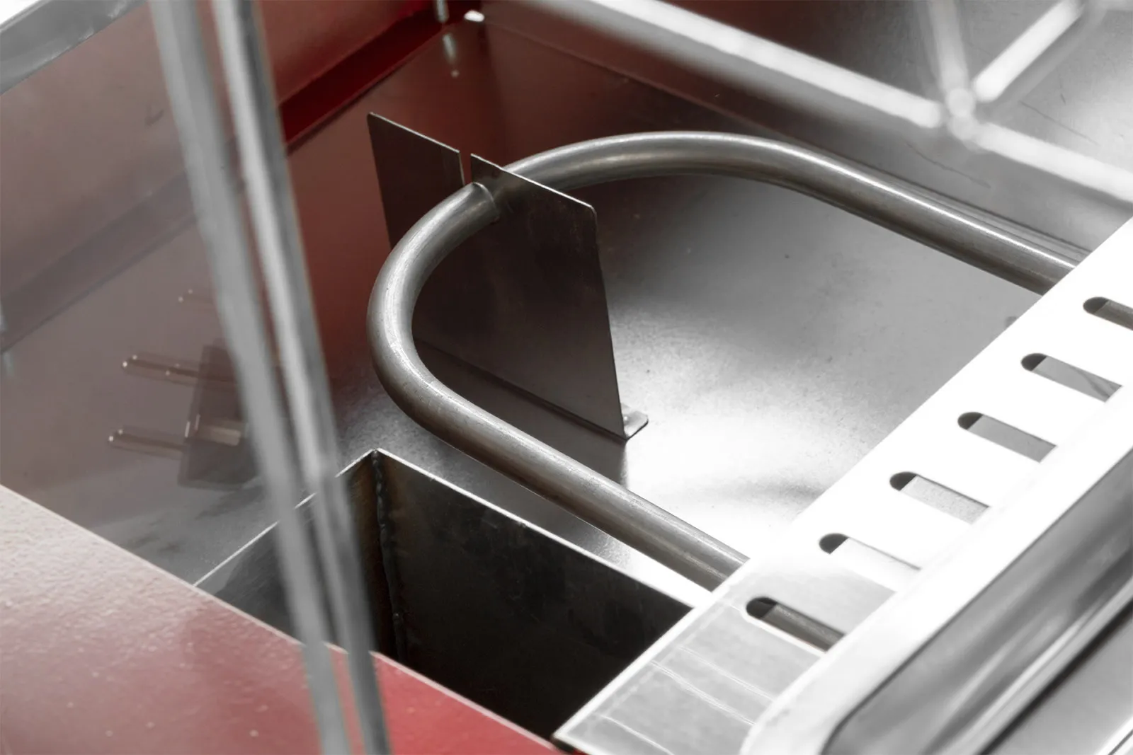 - Витрина оснащена полкой под гастроёмкости с двумя гастроёмкостями формата GN 1/4 и решетчатой полкой для дополнительного размещения продуктов.